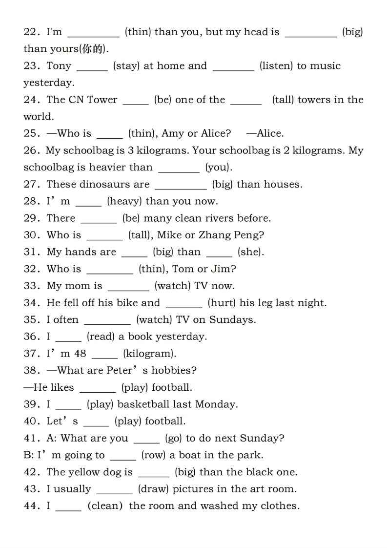 六年级下册人教PEP英语重点语法突破专项训练(一)完形填空