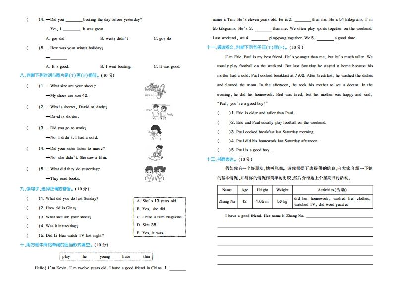 六下人教PEP英语期中试卷